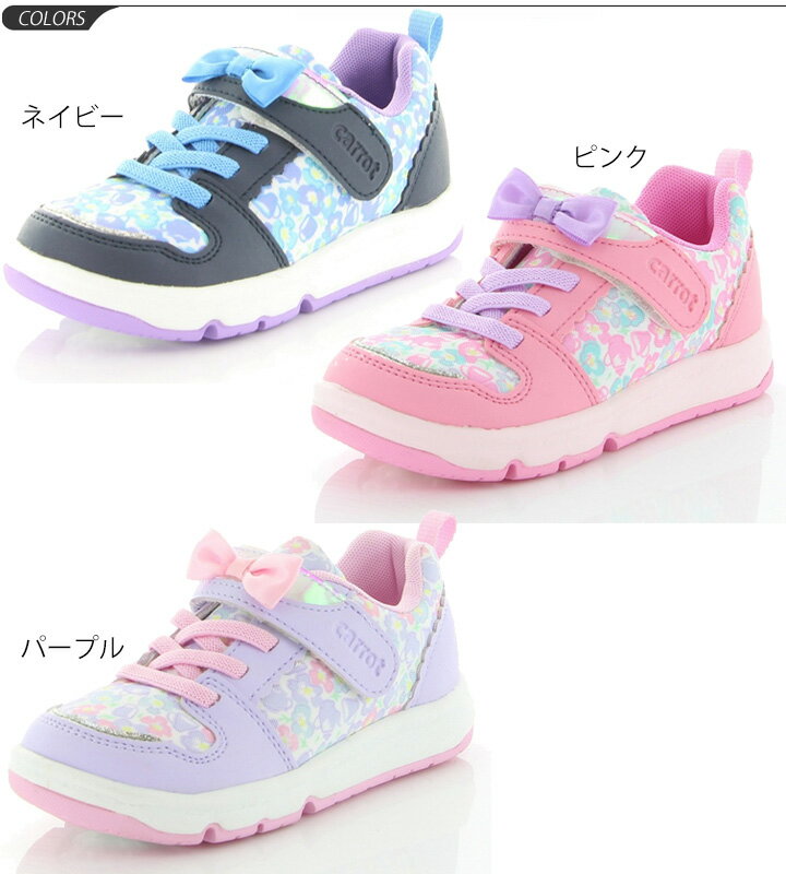 キッズシューズ ジュニア ガールズ スニーカー 女の子 子供靴 キャロット carrot ムーンスター moonstar コートタイプ 15-19.0cm フェミニン リボン 女児 運動靴 リボン かわいい ベルクロ くつ/CR-C2263