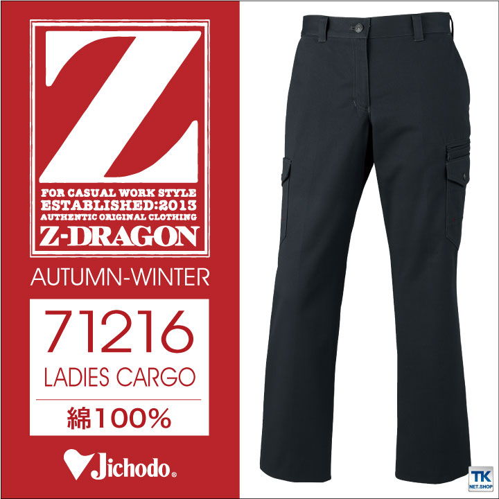 作業ズボン 綿100% レディースノータックカーゴパンツ 作業服 作業着 Z-DRAGON 自重堂 カジュアルワーク 秋冬素材 ワークパンツ jd-71216-b