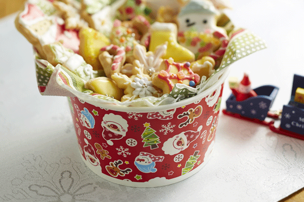 クリスマス XS821 ロールフリーカップ (ハッピークリスマス)25枚惣菜容器・容器・チキン・フライドチキン・ポップコーン・フードコンテナ・ギフト・プレゼント・お菓子・製菓用品・パーティー・バーレル・紙製