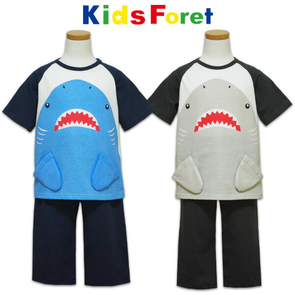 パジャマ キッズ 子供 男の子 半袖 Kids Foret キッズフォーレ(B33700) サメ柄 100 110 120 130 140cm 綿100% コットン 子ども ルームウェア 春夏【メール便OK】【あす楽対応】