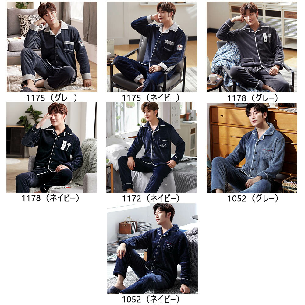 メイン素材: ポリエステル サンゴフリース 種類: 1175(グレー)、1175(ネイビー)、1178(グレー)、1178(ネイビー) 1172(ネイビー)、1052(グレー)、1052(ネイビー) サイズ: L : 着丈:73cm バスト:110cm 袖丈:59cm ズボン丈:100cm ヒップ:118cm XL : 着丈:75.5cm バスト:115cm 袖丈:60.5cm ズボン丈:102cm ヒップ:123cm XXL: 着丈:78cm バスト:120cm 袖丈:62cm ズボン丈:104cm ヒップ:128cm XXXL:着丈:80cm バスト:125cm 袖丈:63.5cm ズボン丈:106cm ヒップ:133cm 優しい素材でもこもこでフワフワな肌触り♪